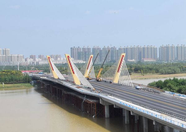 赤壁路大橋自開建以來就備受廣大六安市民的關(guān)注,其獨(dú)特的雙塔雙索面矮塔斜拉橋設(shè)計被市民譽(yù)為六安最美大橋。自2014年12月開工建設(shè)以來,該項目克服了地質(zhì)條件差、施工工藝復(fù)雜等諸多不利因素,努力強(qiáng)化項目精細(xì)化管理和現(xiàn)場標(biāo)準(zhǔn)化施工,先后順利完成大橋樁基、承臺、現(xiàn)澆箱梁和主塔等各項施工工作,為大橋的提前交付提供了強(qiáng)有力的保障。