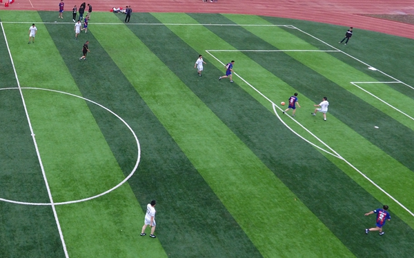 下午3點(diǎn),比賽開(kāi)始,兩隊(duì)迅速進(jìn)入狀態(tài),隊(duì)員們盡情揮灑汗水,享受著比賽的激情??焖賯髑?,奮力拼搶,你來(lái)我往攻守頻換,每一次搶斷、射門(mén)都會(huì)引來(lái)全場(chǎng)歡呼。