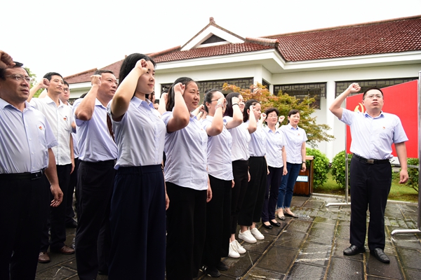 下午,在李克農(nóng)故居,錢總帶領(lǐng)全體黨員重溫了入黨誓詞。在渡江戰(zhàn)役紀(jì)念館,一件件陳列的歷史文獻,一幅幅革命烈士的照片,一個個感人至深的革命故事,一段段珍貴的影像資料,讓全體黨員重回到那段跌宕起伏、波瀾壯闊的革命歲月,親身感受中國共產(chǎn)黨艱苦卓絕的奮斗史和輝煌歷程,接受了一次黨史黨性教育和精神洗禮。