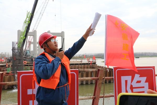 固蚌、蕪黃高速作為省委省政府規(guī)劃的“縣縣通高速”,將在2021年建成通車,這對于今年3月份項目才正式開工的全體建設者來說,無疑是個巨大挑戰(zhàn)。在淮河岸邊、澮河之上,青年黨員陸志康正在組織打樁機施工?!皾液犹卮髽蜷L2.6km,是安徽省首座組合梁系桿拱橋,引橋采用鋼板組合梁,建成后將成為澮河上的新地標,”他自信地說。不論是疫情防控后的復工復產(chǎn),還是抗洪期間,他都始終沖鋒在前,白天在一線蹲守,晚上研究解決問題的辦法。圓月初升,各個工位上的聚光燈,點燃寂靜夜空,將夜晚照得如同白晝明亮,陸志康乘著夜色仍在混凝土澆筑工點,忘記了時間,只為了一個目標,就是要把項目又好又快建成。