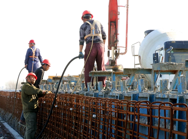 固蚌高速02標(biāo),春節(jié)期間加班加點推進(jìn)工程建設(shè),在南岸引橋右幅順利實現(xiàn)貫通后,170名參建人員搶抓晴好天氣,保持大干勢頭,同步推進(jìn)四個工區(qū)橋面作業(yè),架橋機、履帶吊等機械滿載開工,為3月底達(dá)成橋面工程節(jié)點奠定堅實基礎(chǔ)。蕪黃項目再動員、再鼓勁,人員輪休、機械不停,荊竹坑大橋、程家坦隧道及附屬工程穩(wěn)步推進(jìn),2#預(yù)制梁場每天以8片梁速度加速生產(chǎn),全力沖刺半幅通車節(jié)點目標(biāo)。