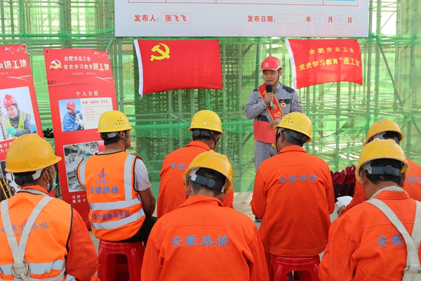 4月29日,繁華大道橋項目邀請全國勞動模范王開庫開展黨史學習教育進班組活動,為一線工人宣講黨史故事。