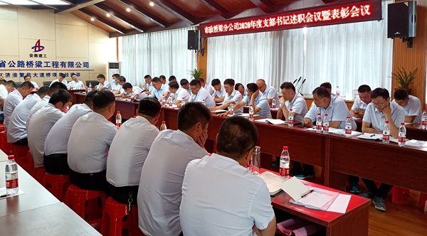 5月29日,市政分公司2020年度黨支部書記述職評議暨表彰會議在引江濟淮繁華大道橋項目部召開,分公司領導班子成員、分公司后勤部門負責人及所屬各項目支部負責人、項目經(jīng)理和部分職工代表80余人參加會議。
