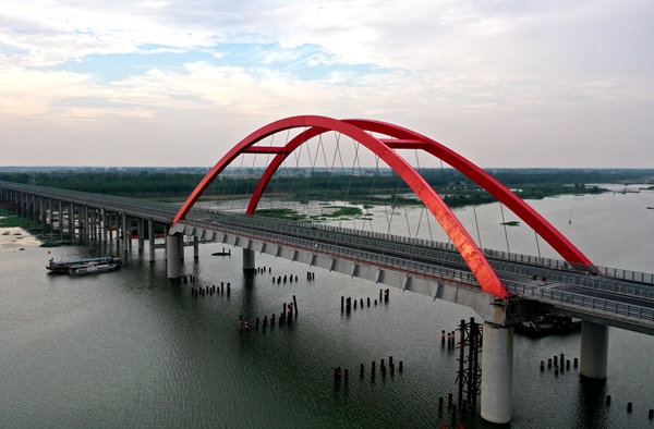 媒體們聚焦特大橋施工工藝、技術(shù)難點(diǎn)和建設(shè)歷程等內(nèi)容進(jìn)行了跟蹤報(bào)道。澮河特大橋?yàn)榭绾降朗┕?,全長(zhǎng)2.611千米,是固蚌高速02標(biāo)項(xiàng)目關(guān)鍵控制性工程,其中主橋?yàn)?35米提籃式鋼箱系桿拱橋,也是安徽省高速公路上第一座組合梁系桿拱橋。經(jīng)過(guò)全體員工的不懈奮斗、攻堅(jiān)克難,澮河特大橋提前2個(gè)月完成建設(shè)任務(wù),并于7月1日正式通車試運(yùn)營(yíng)。
