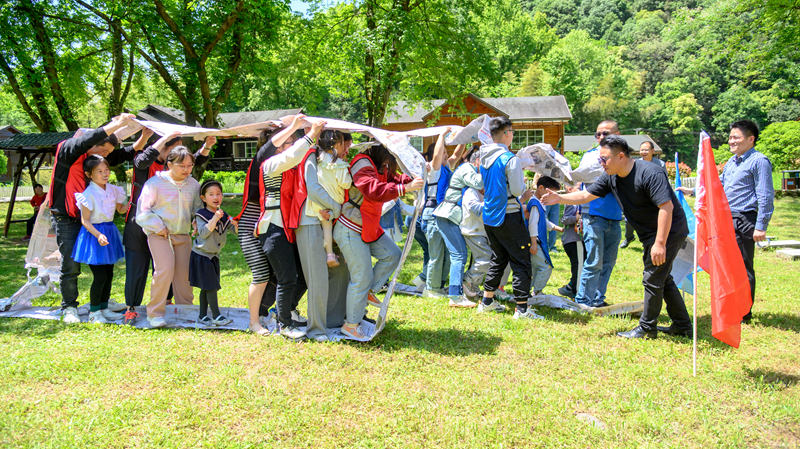 在家屬互動活動現(xiàn)場,“親子組”和“青年組”在教官的帶領下,依次開展了“消消樂”“坦克履帶”“面粉接力賽”“動力圈”等團建游戲,現(xiàn)場氣氛熱烈,高潮迭起,掌聲陣陣,歡聲笑語不斷。大家在游戲中增進交流,加深感情,一起享受著快樂的大家庭時光?;顒幼詈?,職工家屬們還依次參觀了項目駐地建設,并詳細了解了項目“家文化”建設情況。