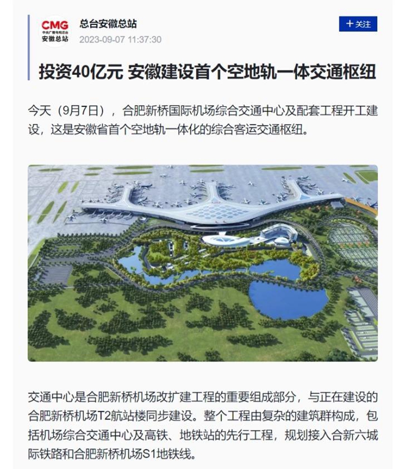 【名媒聚焦】央視新聞、人民日?qǐng)?bào)等國(guó)家級(jí)主流媒體聚焦安徽路橋合肥新橋機(jī)場(chǎng)綜合交通項(xiàng)目建設(shè)