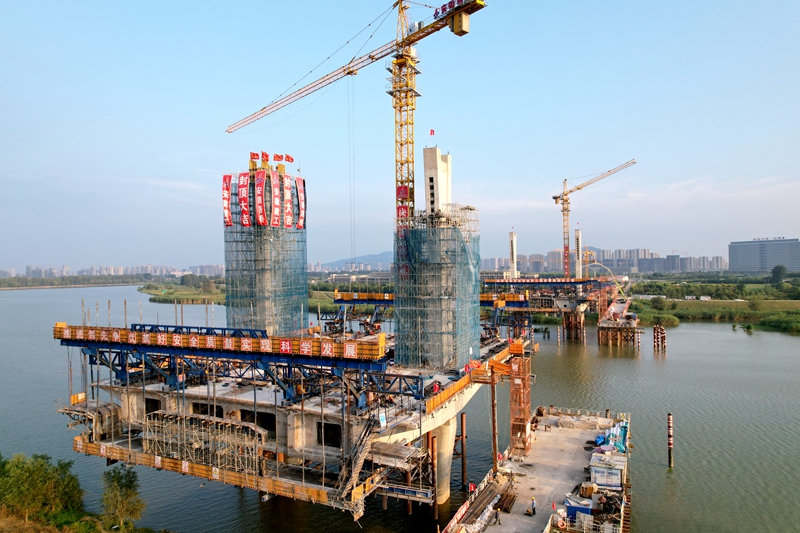 9月9日,G206-03標項目渦河八橋北岸14#墩左幅主塔順利封頂。至此,大橋南北兩岸4個主塔全部封頂,標志著該項目主橋施工再次取得突破性進展,為后續(xù)的主梁懸澆和斜拉索掛設施工打下了堅實基礎。