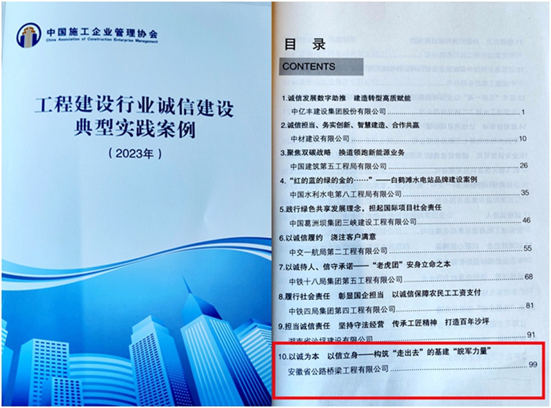 近日,從中國施工企業(yè)管理協(xié)會傳來喜訊,公司入選“2023年工程建設(shè)行業(yè)誠信建設(shè)典型實踐案例”。