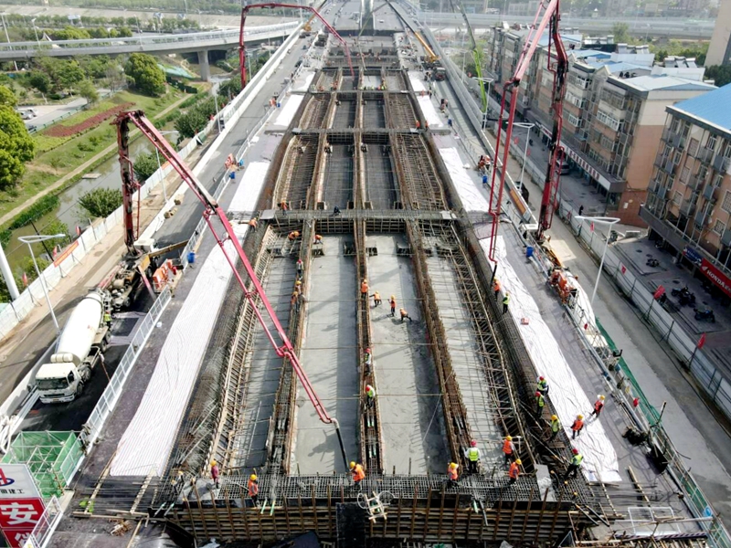 百舸爭流,奮楫者先。項目以勞動競賽為著力點,強化統(tǒng)籌調(diào)度,確保工程項目的有序推進。項目全線位于肥西上派鎮(zhèn)中心城區(qū),施工工作面與軌道交叉,施工空間及工作面零星且狹窄,導(dǎo)致交通導(dǎo)改難度大,難以形成大規(guī)模的工作面,嚴重制約項目生產(chǎn)。項目團隊采取“見縫插針”策略,交付一段施工一段,確保工作面不閑置。此外,項目主橋第四聯(lián)為項目跨度最大的一聯(lián),主線下方為軌道3號線,考慮地鐵最后一段交叉工作面交付時間較遲,項目多次組織協(xié)調(diào)會及專家論證會,在確保結(jié)構(gòu)安全的前提下,及時調(diào)整施工方案,于11月22日順利完成該聯(lián)箱梁的首次混凝土澆筑,預(yù)計較原計劃工期提前35天,為主線橋通車目標(biāo)奠定了基礎(chǔ)。