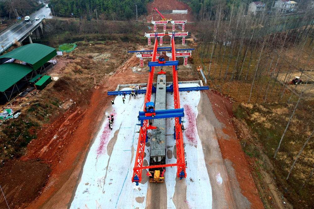 12月18日,G329孫埠至大汪村一級(jí)公路改建工程首片箱梁順利架設(shè)。