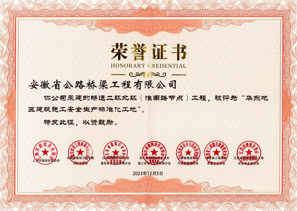 近日,華東地區(qū)建筑安全聯(lián)誼會公布2023年度華東地區(qū)建筑施工安全生產(chǎn)標(biāo)準(zhǔn)化工地名單,公司承建的暢通二環(huán)北環(huán)(淮南路節(jié)點)工程項目光榮上榜。