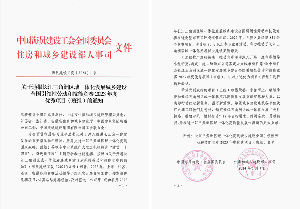 近日,中國海員建設工會和住建部人事司聯(lián)合公布長江三角洲區(qū)域一體化發(fā)展城鄉(xiāng)建設全國引領性勞動和技能競賽2023年度優(yōu)秀項目評選結(jié)果,公司桃花科創(chuàng)產(chǎn)業(yè)園EPC項目榜上有名。