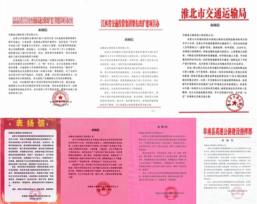 近日,公司多個(gè)高速公路重點(diǎn)項(xiàng)目收到屬地主管部門、業(yè)主單位的來信表揚(yáng)。