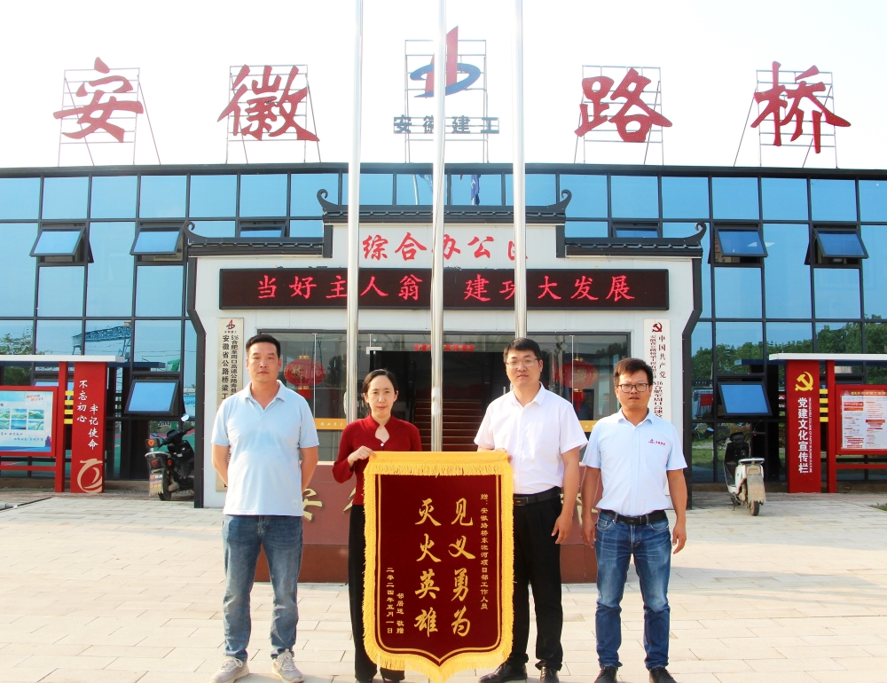 5月6日,一面繡有“滅火英雄,見義勇為”的鮮紅錦旗被鄭重地送到安徽路橋合周高速4標東淝河大橋項目部,這是當?shù)卮迕駥椖坎坑⒂戮然鸬纳钌钪x意與高度贊揚。