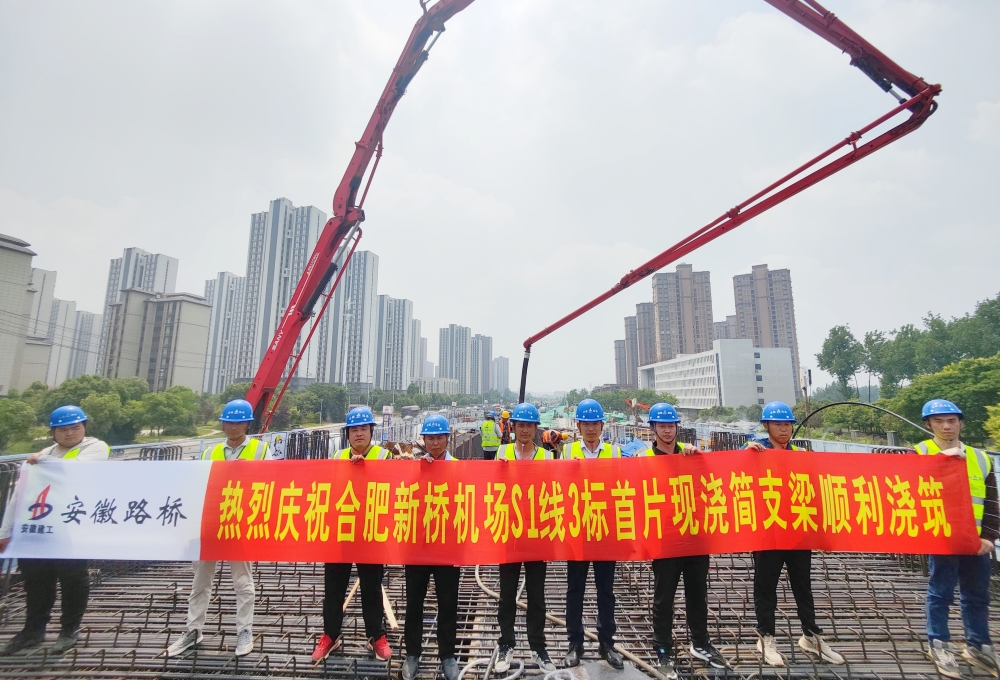 5月24日上午,合肥新橋機場S1線3標高架段首跨現(xiàn)澆簡支梁完成澆筑,項目建設進入橋梁上部結構施工階段。