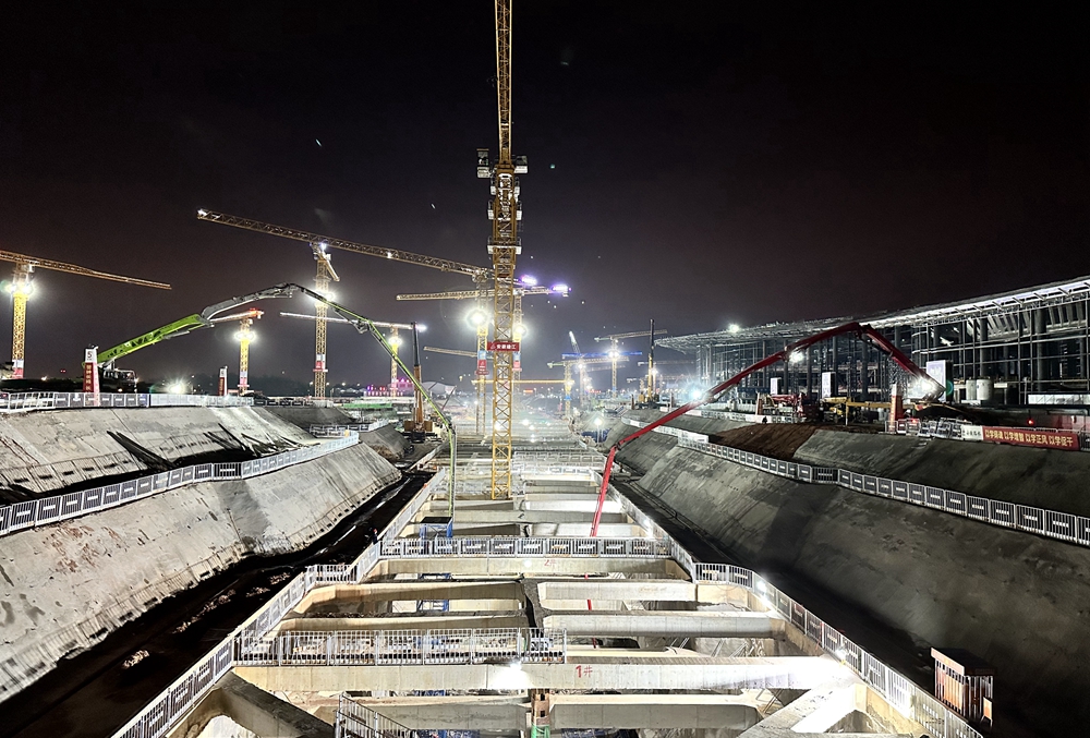 6月18日,合肥新橋國(guó)際機(jī)場(chǎng)綜合交通中心項(xiàng)目經(jīng)過一晚上的鏖戰(zhàn),成功完成合新六城際鐵路新橋機(jī)場(chǎng)站先行工程首塊軌頂風(fēng)道澆筑施工。