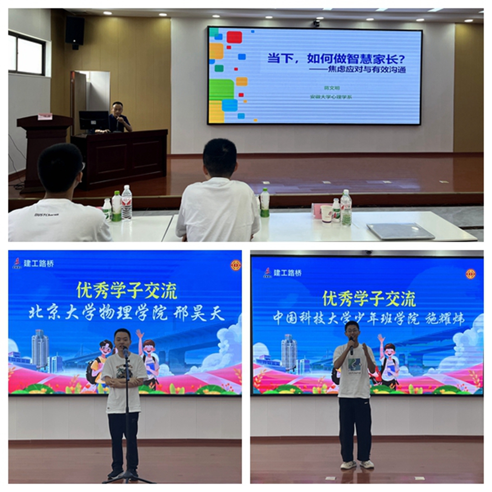 本次活動(dòng)開展了親子寄語、愛心慰問,邀請了安徽大學(xué)心理學(xué)系教授開展教育講座。同時(shí),還邀請了來自北京大學(xué)、中國科學(xué)技術(shù)大學(xué)等優(yōu)秀學(xué)生代表分享了學(xué)習(xí)經(jīng)驗(yàn)。