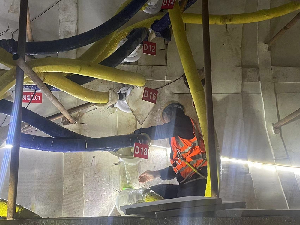 聯(lián)絡(luò)通道為什么要采用“凍結(jié)法”施工?據(jù)悉,在固鎮(zhèn)路站至盾構(gòu)井區(qū)間線路范圍內(nèi),1號(hào)聯(lián)絡(luò)通道跨越南淝河,洞身范圍內(nèi)為軟弱土層,采用普通施工方法則有坍塌風(fēng)險(xiǎn)。采用“凍結(jié)法”施工,在施工過程中及施工范圍,全程、全面運(yùn)用凍結(jié)加固方法,使施工周邊土體與地下水凍結(jié)成具有承載封水效果的板結(jié)帷幕,隔絕地下水,解決跨河富水地段隧洞開挖難以支護(hù)的技術(shù)難題,消除安全隱患。另外,“凍結(jié)法”施工相對(duì)環(huán)保,對(duì)地面環(huán)境影響較小。