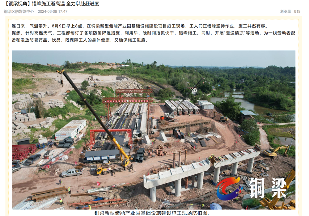 8月9日,重慶銅梁區(qū)融媒體中心聚焦公司承建的重慶銅梁項目建設,對項目戰(zhàn)高溫、斗酷暑,持續(xù)推進施工進度,加快配套路網(wǎng)建設,蓄積產(chǎn)業(yè)發(fā)展新動能進行專題報道。