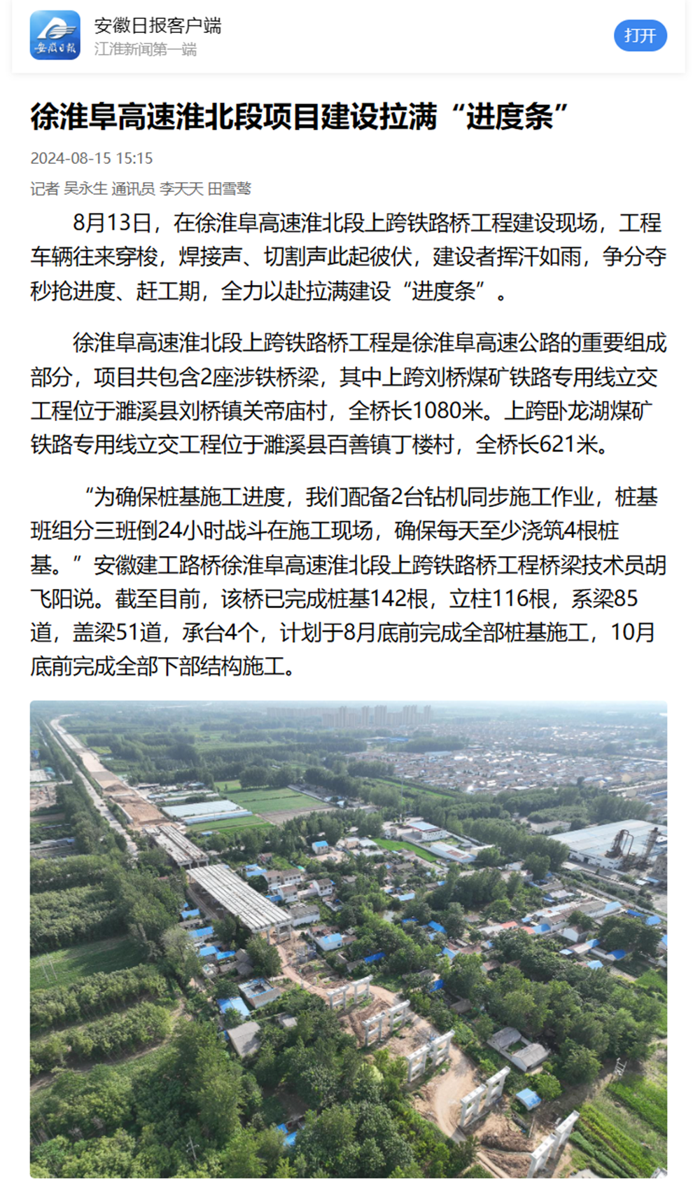 【名媒聚焦】安徽日報客戶端聚焦徐淮阜高速淮北段上跨鐵路橋工程建設
