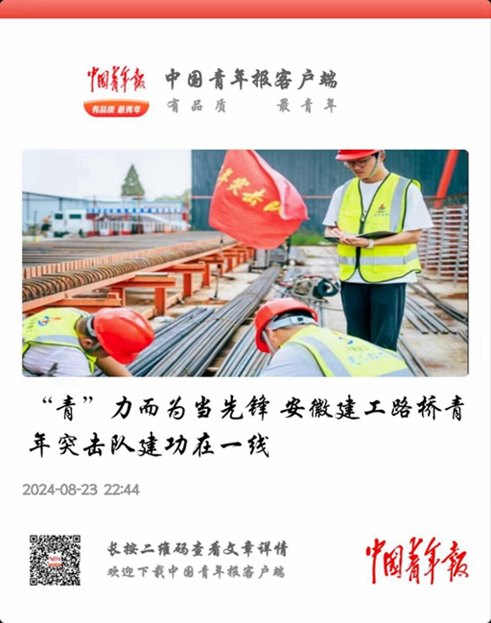 【名媒聚焦】中國青年報:“青”力而為當先鋒 安徽建工路橋青年突擊隊建功在一線