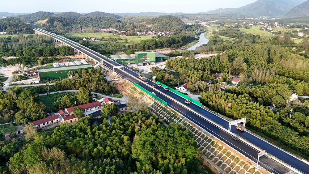 【路橋“競(jìng)”行時(shí)】宣涇高速一期03標(biāo)全線(xiàn)瀝青攤鋪完成