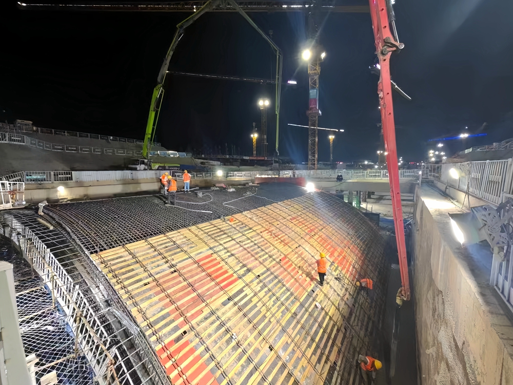 作為安徽省首個(gè)空地軌一體化綜合客運(yùn)交通樞紐項(xiàng)目,合肥新橋機(jī)場(chǎng)綜合交通中心項(xiàng)目現(xiàn)場(chǎng)一派繁忙景象。群塔作業(yè)指揮有序,工程土方運(yùn)輸日夜不歇,在GTC、多功能廳、大鐵馬蹄段、小鐵標(biāo)準(zhǔn)段現(xiàn)場(chǎng),600余名工人同步作業(yè)?!皥A一個(gè)夢(mèng)想,勝過(guò)小家話中秋”,一線建設(shè)者們同信念,同理想,一鼓作氣,鉚足干勁抓生產(chǎn),奮斗著的中秋,最美。