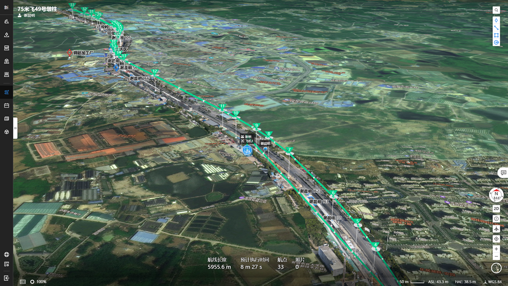 質量是工程的生命線。無人機巡檢系統(tǒng),為質量安全擦亮智慧“雙眼”?!拔覀儼褵o人機巡檢與GIS+BIM技術相結合,對項目全線每月更新GIS數(shù)據(jù),形成虛實互聯(lián)的電子沙盤,真實還原現(xiàn)場工程建設場景?!庇嗝骶榻B,操控人員僅需遠程下達巡檢任務,即可實現(xiàn)起飛、巡檢、降落、回收、充電、數(shù)據(jù)上傳等一系列自動操作,同時集成測量分析、重要部位重點標注等功能,自動巡檢無人值守、自動作業(yè),還支持夜間紅外巡邏,“方寸屏幕間即可窺見施工全線場景?!?/p>