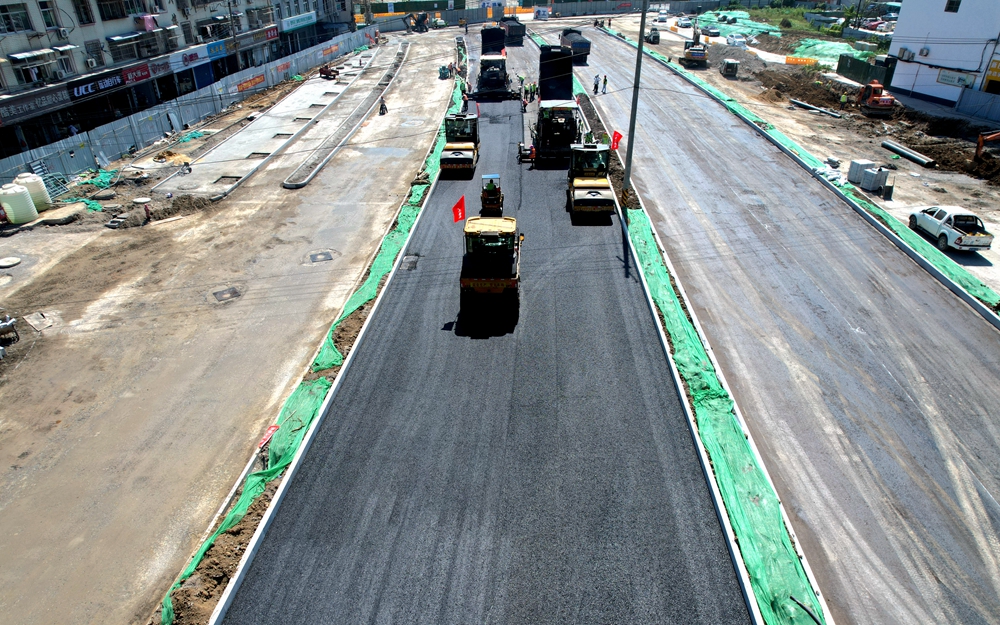 在肥西市政項目,項目團隊搶抓晴好天氣,人員機械密切配合,推動創(chuàng)新大道、云谷路全面進入瀝青攤鋪施工階段,提前完成計劃產(chǎn)值。