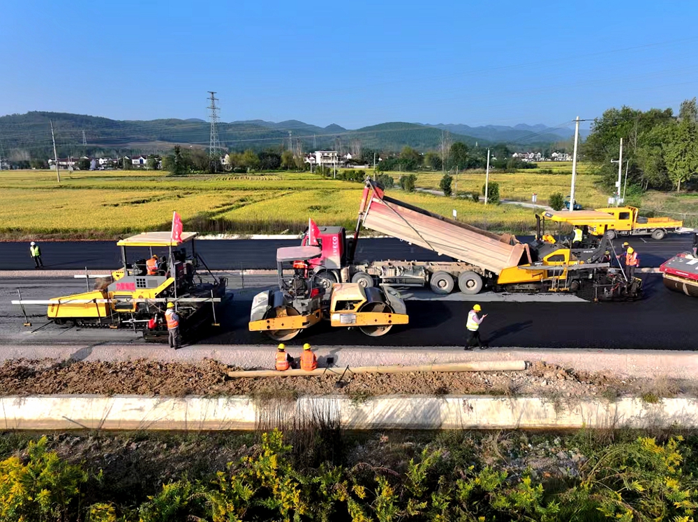 “目前項(xiàng)目已進(jìn)入全面施工階段。項(xiàng)目控制性工程水東四號(hào)橋施工已經(jīng)基本完成,水穩(wěn)已完成8.3公里施工,瀝青已完成4.7公里施工。為了保證工程進(jìn)度,項(xiàng)目部正牢牢抓住近期晴好天氣的施工‘黃金期’,力爭(zhēng)保質(zhì)保量按期完成建設(shè)任務(wù)?!表?xiàng)目部副經(jīng)理馬佳杰說(shuō)。