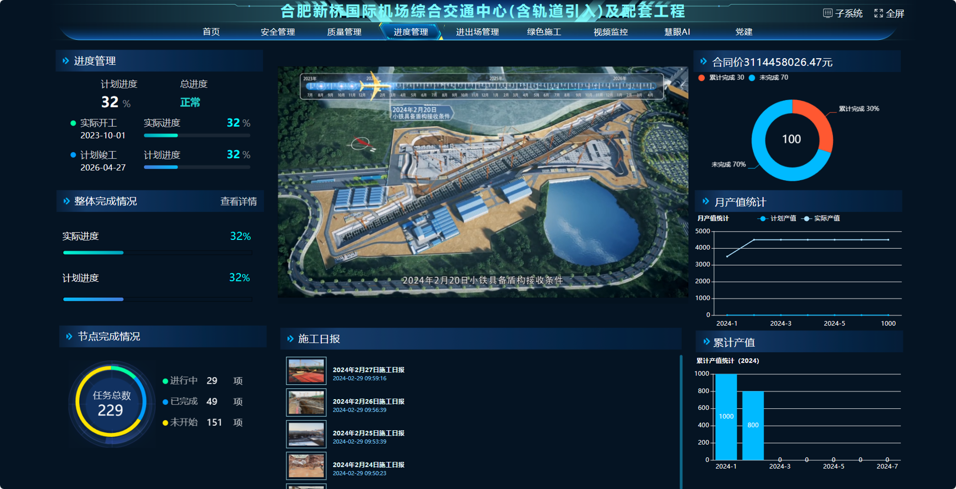 合肥新橋國際機場GTC主體工程項目是安徽省內(nèi)單體交叉空間最復(fù)雜的綜合交通樞紐工程,采用空地軌一體化設(shè)計方案,關(guān)鍵線路施工難度大,組織協(xié)調(diào)要求高。公司利用BIM技術(shù)對綜合交通中心進行全專業(yè)建模,有效利用BIM深化設(shè)計、模擬施工組織、分析施工變更、進行三維技術(shù)交底,助力施工生產(chǎn),提高施工管理效率,提升工程品質(zhì)。