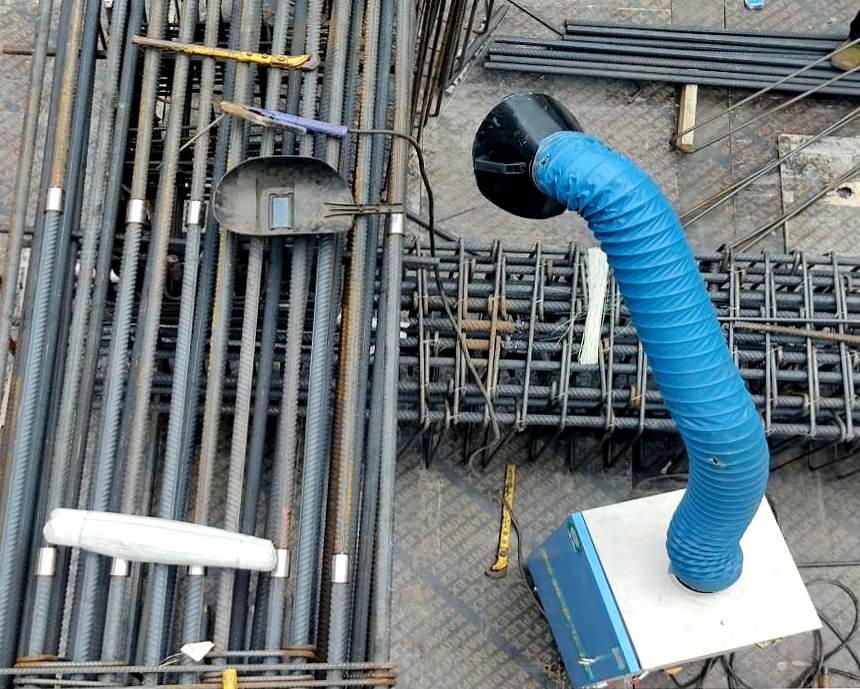 合肥市軌道4號線1標地鐵車站焊接作業(yè)頻繁,會產(chǎn)生大量有害煙塵。項目采用可移動式焊煙收集凈化裝置,集中吸收并凈化焊接產(chǎn)生的廢氣,對直徑0.3μm以上的金屬顆粒和粉塵處理效率可達99%,有效解決了煙塵污染和作業(yè)人員身體損傷問題。該技術不僅創(chuàng)造了清潔生產(chǎn)環(huán)境,更實現(xiàn)了健康保障、環(huán)境改善、經(jīng)濟效益的三重提升。