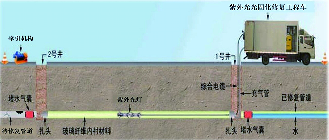 紫外光固化管道修復(fù)技術(shù)為城市雨污水管網(wǎng)改造帶來全新方案探索。將特制軟管材料浸漬光固化樹脂后拉入舊管道,在紫外光照射下迅速固化形成高強(qiáng)度內(nèi)襯管,無需開挖路面,極大減少施工擾民與環(huán)境破壞。在新站區(qū)排水管網(wǎng)排查整治完善工程一期-1標(biāo)順利實(shí)現(xiàn)了安徽省內(nèi)最大管徑管道紫外光固化修復(fù)。