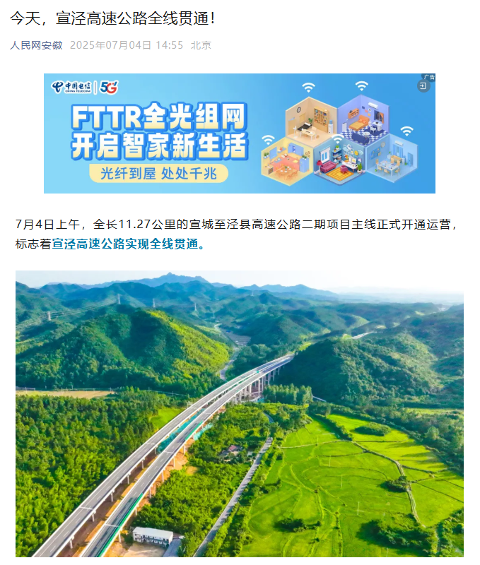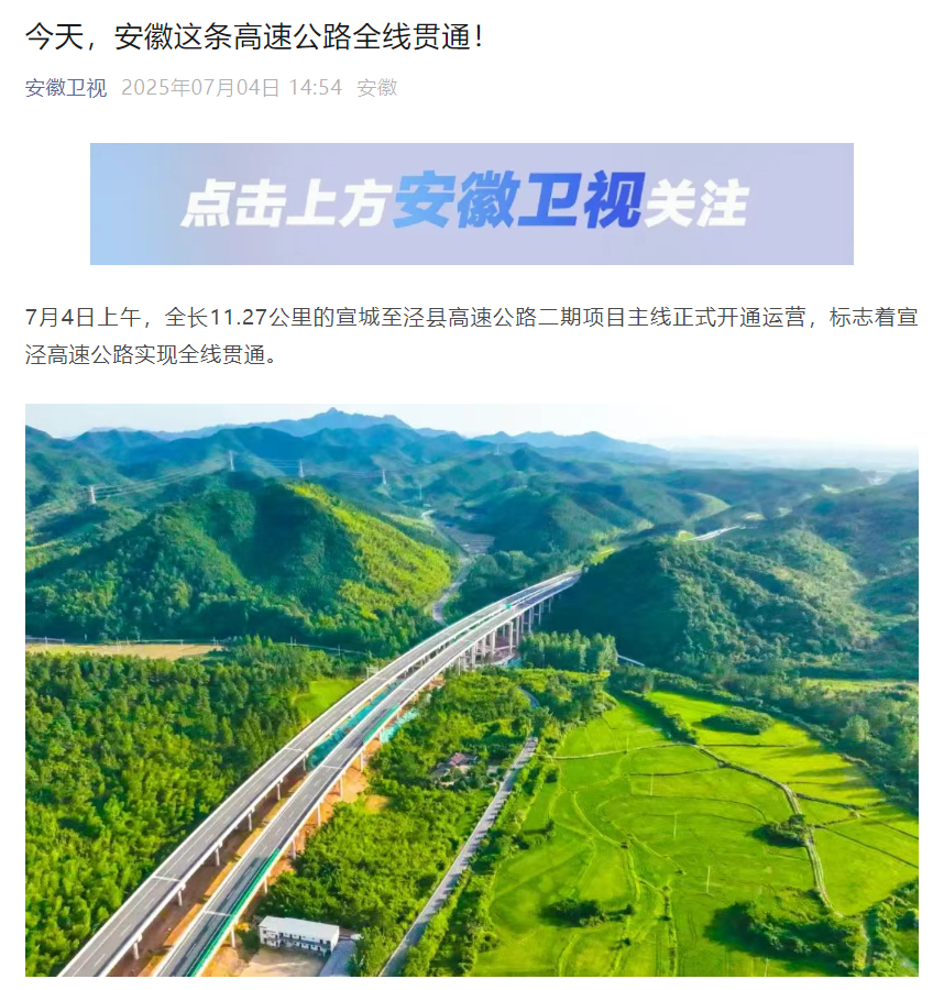 宣城?涇縣 公司參建的這條高速公路通車放行 人民網(wǎng)、央廣網(wǎng)等多家媒體關注報道