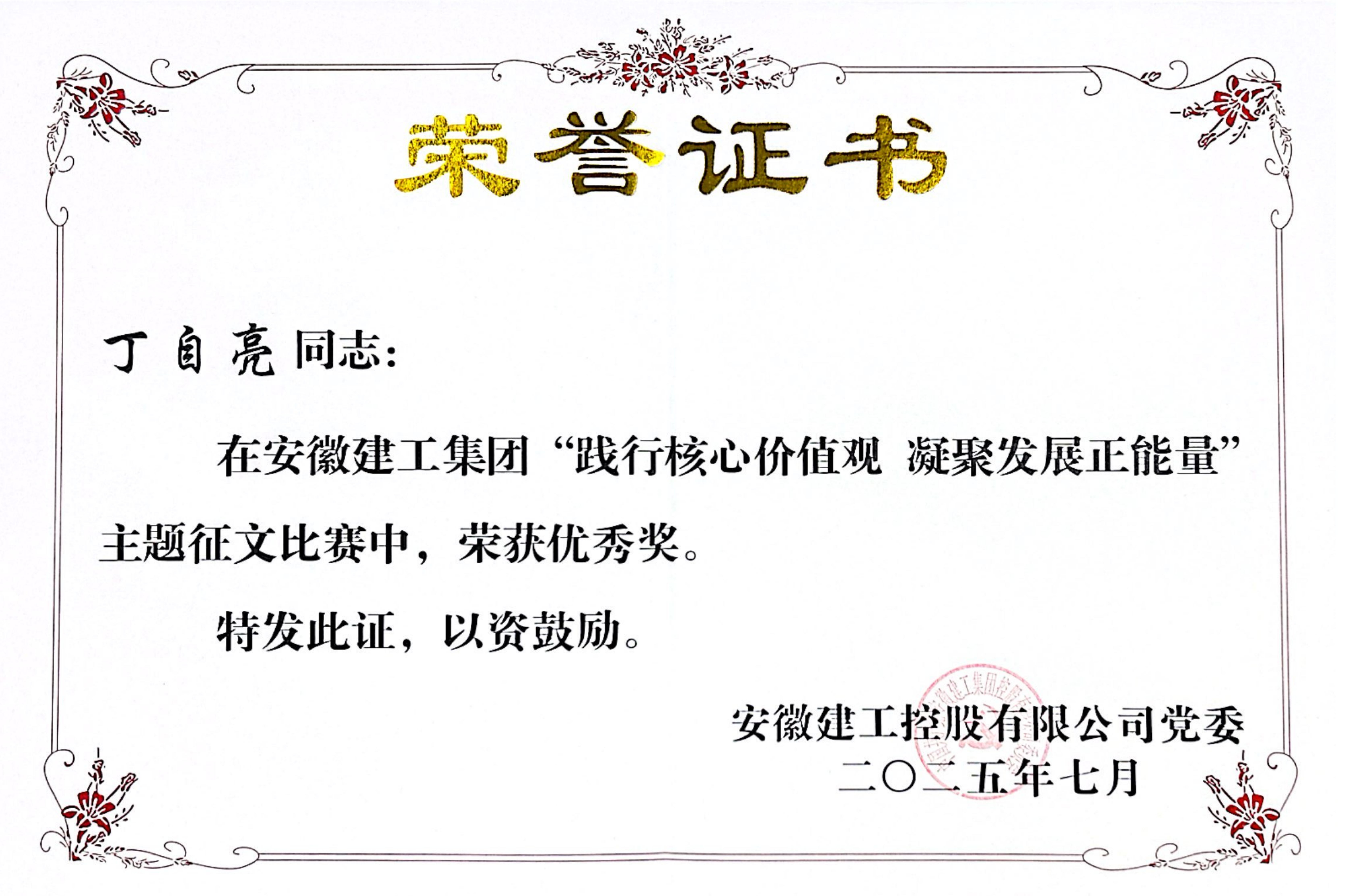 近日,集團“踐行核心價值觀,凝聚發(fā)展正能量”主題征文比賽結果公布,公司報送的多個作品在數(shù)十篇優(yōu)秀作品中脫穎而出。其中,合肥分公司趙小龍同志作品《踐行核心價值觀,織就立體交通新篇章——安徽建工合肥新橋機場綜合交通中心建設紀實》斬獲一等獎,公路一公司丁自亮同志作品《戎裝換工服 丹心映初心——一名退役軍人的核心價值觀踐行之路》、橋梁公司高凡同志作品《經(jīng)緯縱橫處 燈火照長路——建工價值觀的泥土與鋼》榮獲優(yōu)秀獎。