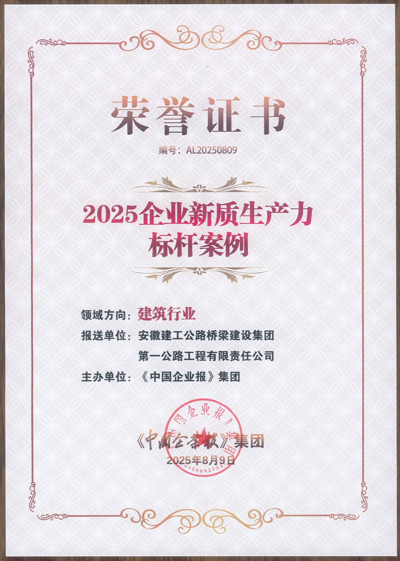 經(jīng)過為期數(shù)月的深入調(diào)研、案例征集和嚴格評審,近日,“2025企業(yè)新質(zhì)生產(chǎn)力標桿案例”正式發(fā)布,全國共有50家優(yōu)秀企業(yè)案例入選,涵蓋人工智能、新能源、低空經(jīng)濟及傳統(tǒng)產(chǎn)業(yè)等領(lǐng)域。公司所屬公路一公司《以新質(zhì)生產(chǎn)力激活企業(yè)高質(zhì)量發(fā)展新動能》案例,憑借在創(chuàng)新發(fā)展、綠色發(fā)展和可持續(xù)發(fā)展方面的突出成效成功入選。