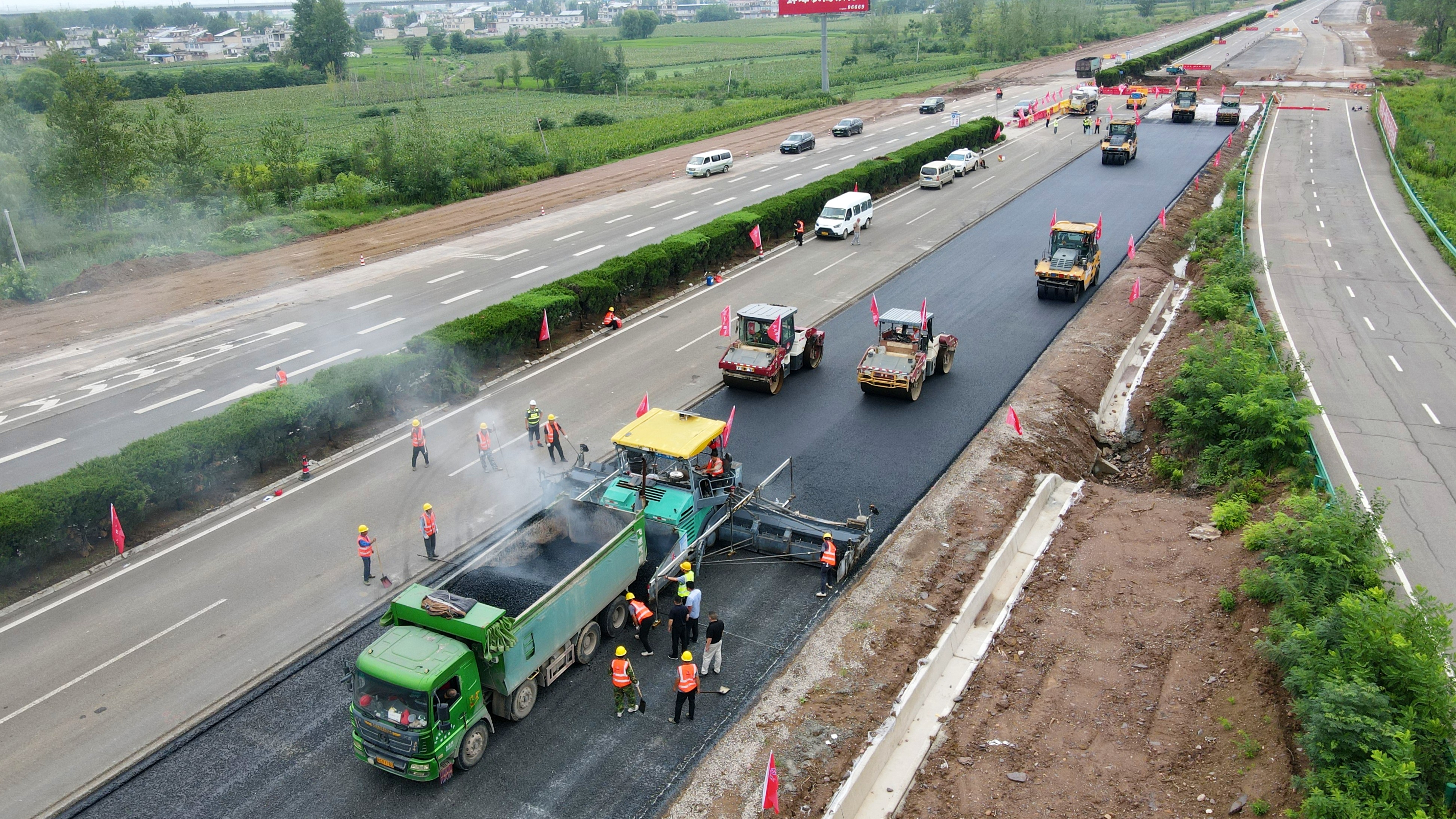 【路橋“競”行時】G3京臺高速改擴建項目瀝青ATB上基層試驗段鋪設完成