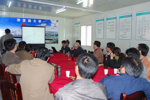 下午,觀摩團一行又驅(qū)車來到了金桃橋項目。參觀了現(xiàn)場后,在金寨縣賓館會議室觀摩團一行聽取了項目經(jīng)理劉曉晗的匯報。隨后各單位技術(shù)負責人就項目的箱拱吊裝施工等關(guān)鍵技術(shù)作了討論和交流。鄭總對該橋目前進展情況表示滿意,并做了總結(jié)講話。同時對項目部積極探索和鉆研技術(shù)難點的精神表示贊賞。并對公司的質(zhì)量技術(shù)管理工作提出要求,要求格式進一步結(jié)合深入學習實踐科學發(fā)展觀,繼續(xù)開展技術(shù)的開發(fā)挖掘,進行技術(shù)的集成創(chuàng)新,研究、提煉項目工法和專利,為集團公司技術(shù)創(chuàng)新多做工作,以增強集團公司的核心競爭力。