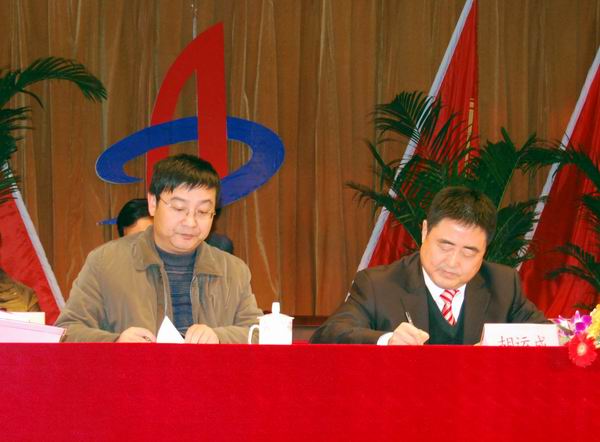 集團公司董事長、總經(jīng)理胡運成與公司總經(jīng)理汪衛(wèi)東簽訂2010年生產、經(jīng)營目標責任書
