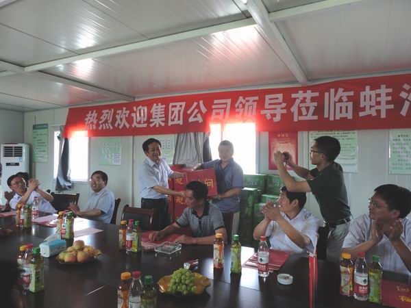 我部項(xiàng)目經(jīng)理王煒生就項(xiàng)目的施工總體進(jìn)度及近期工作開展、完成情況,向李總一行領(lǐng)導(dǎo)作了簡要的匯報(bào)。李總在認(rèn)真聽取了匯報(bào)后,指出省高速控股集團(tuán)公司會(huì)大力支持建設(shè)單位的工作,建設(shè)單位要重質(zhì)量、保安全、抓進(jìn)度;希望建設(shè)單位要積極克服各種施工困難,早日實(shí)現(xiàn)蚌淮高速公路通車的目標(biāo)。