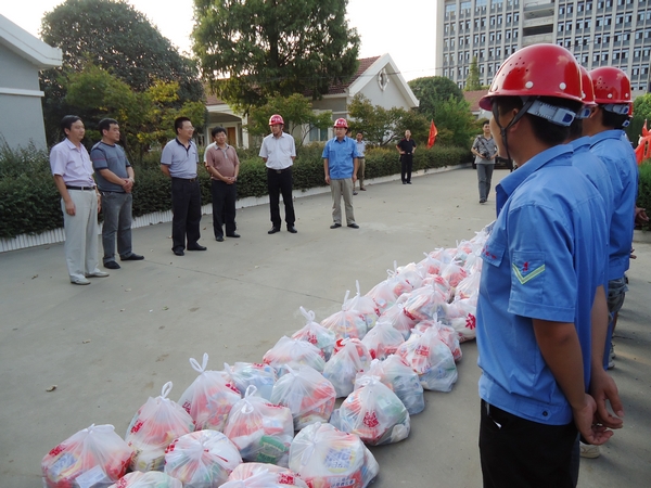 下午5時,寧世明副區(qū)長一行來到懷寧北路1標(biāo)施工現(xiàn)場,向冒著酷暑辛勤工作的廣大一線員工表示親切慰問。寧副區(qū)長關(guān)切的詢問員工們的生活情況及高溫天氣下的作業(yè)時間安排,并親手送上綠豆、白糖、純凈水、毛巾、風(fēng)油精等防暑降溫物品。寧副區(qū)長要求有關(guān)部門全力做好高溫季節(jié)各項工作,并叮囑工程負(fù)責(zé)人,無論工期多緊,也要做好安全生產(chǎn)工作,夏天氣溫高,要合理安排施工時間,在保證工程質(zhì)量、進度的同時,確保工人們勞逸結(jié)合,身體健康。