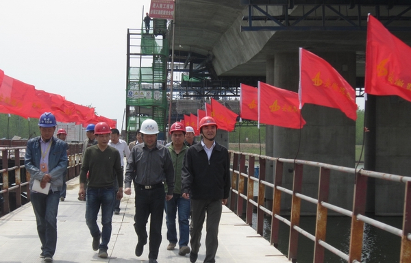 何局長(zhǎng)一行聽取了公司總經(jīng)理助理傅月斌同志關(guān)于當(dāng)前施工總體情況的匯報(bào),并深入到主橋施工現(xiàn)場(chǎng),詳細(xì)詢問(wèn)和查看了工程標(biāo)準(zhǔn)化建設(shè)和質(zhì)量安全情況,對(duì)該項(xiàng)目總體建設(shè)情況給予了肯定。