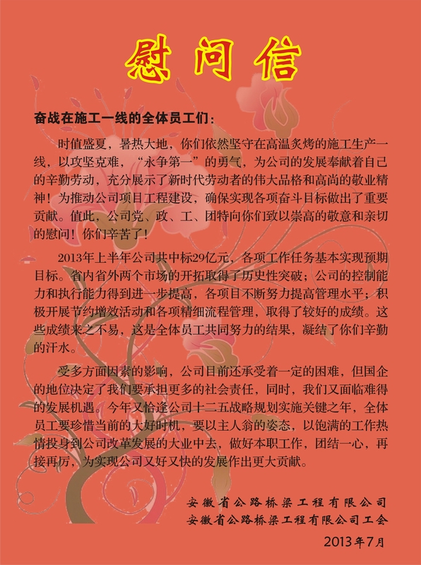 給一線員工的慰問信
