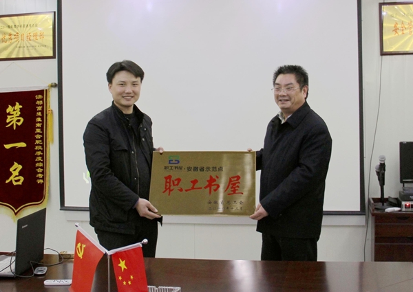 3月12日下午,安徽省總工會(huì)宣教部部長(zhǎng)曾傳發(fā)、副部長(zhǎng)陳重光蒞臨公司濟(jì)祁高速淮合段淮河特大橋路基01標(biāo)項(xiàng)目部為“職工書屋”省級(jí)示范點(diǎn)授牌并贈(zèng)書。集團(tuán)工會(huì)副主席吳曉伍、女工委主任胡愛紅、公司工會(huì)主席胡運(yùn)春陪同。