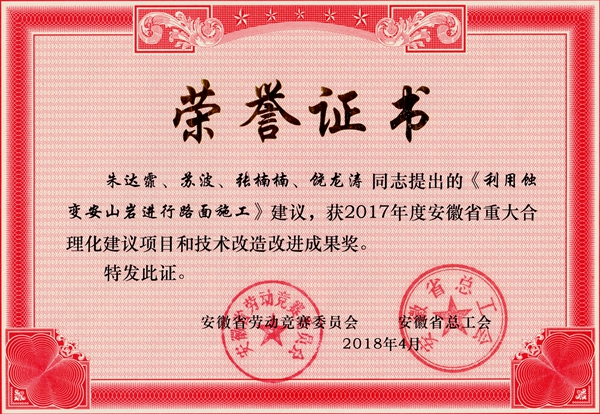 公司14項合理化建議榮獲“安徽省重大合理化建議項目和技術(shù)改造改進(jìn)成果獎”