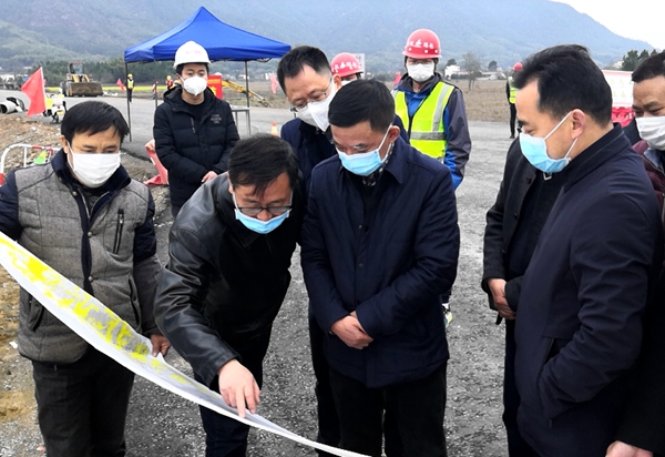 3月1日下午,安徽省交通運(yùn)輸廳總工程師章后忠一行到公司承建的涇縣208省道延伸段調(diào)研防疫和復(fù)工工作,涇縣副縣長程禮奎、交通運(yùn)輸局局長曹建華等陪同。