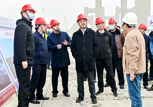 安徽交控集團(tuán)黨委委員、副總經(jīng)理、建設(shè)公司董事長(zhǎng)王宏祥,建設(shè)公司黨委書記、總經(jīng)理黃學(xué)文,固蚌項(xiàng)目辦主任房濤,公司黨委副書記、總經(jīng)理錢申春參加調(diào)研。