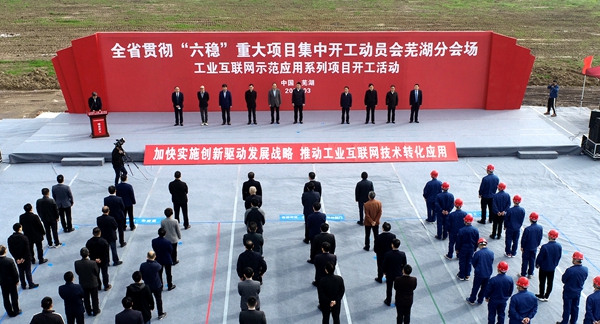 全省貫徹“六穩(wěn)”重大項目開工動員會(蕪湖分會場)在安徽建工鋼結構智能制造產業(yè)化基地舉行