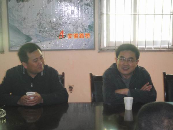在項(xiàng)目部會(huì)議室,陳經(jīng)理首先向交通廳領(lǐng)導(dǎo)匯報(bào)援建工程施工進(jìn)展情況以及漳黃路02標(biāo)全體建設(shè)者克服各種不利因素,提升大干干勁等情況。交通廳及公路局領(lǐng)導(dǎo)對(duì)安徽路橋在四川援建工程中的表現(xiàn)表示滿意,并鼓勵(lì)項(xiàng)目部全體人員要再接再厲,樹起安徽筑路人的光輝風(fēng)采。
