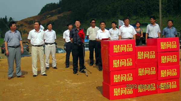 安徽省高速公路總公司副總經(jīng)理、省高等級公路建設(shè)指揮部副指揮長李云貴,省高速公路建設(shè)處副處長、黃祁高速公路項目辦公室主任楊朝暉率慰問組,冒著炎炎酷暑深入黃祁高速路基工程10標施工現(xiàn)場召開黃祁高速項目慰問大會,給黃祁項目員工送來了“清涼”,并親手將慰問品和慰問金發(fā)放到一線工作人員的手中。
